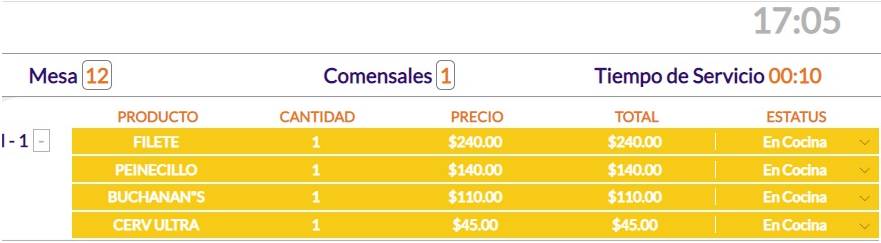 Saber el tiempo en el que el cliente hizo su pedido al mesero